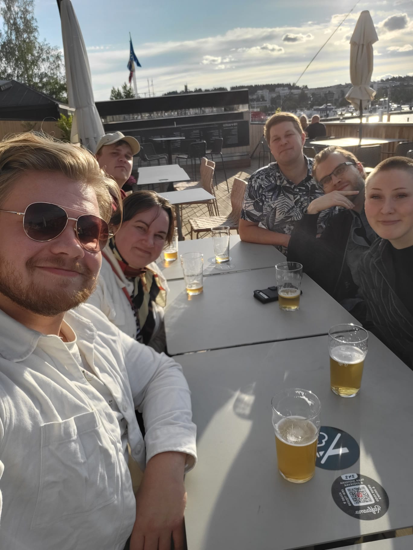 KSJ järjesti jäsenilleen perinteiseen tapaansa Uusien ja vanhojen kesätoimittajien illan. Koolla oltiin tällä kerralla ravintola Sataman Viilussa Jyväskylässä. Paikalla oli kirjaimellisesti nykyisiä ja entisiä kesätoimittajia. Vanhimmat kesätyömuistot illan aikana kerrottiin 1980-luvulta. Kesätyöpaikkoina vilahtelivat puheissa muun muassa Helsingin Sanomat, Savon Sanomat, Suupohjan Sanomat, Uusimaa, Pitäjänuutiset ja Keskisuomalainen. Kuva alkuillalta.