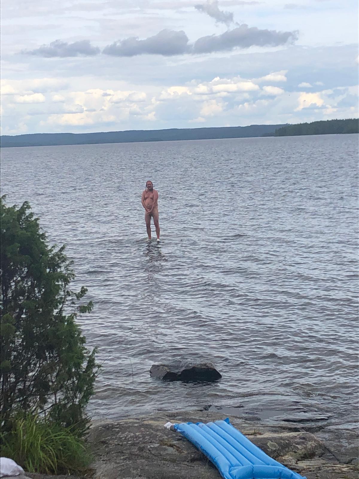 Eräs Lahtela-viikko huipentui unohtumattomaan loppukiihdytykseen. Viimeisen kokonaisen päivän aamuna mies lähti vesurin kanssa rantaan jotakin seivästä hankkimaan, ja minä jäin tiskaamaan. Sanoin, että elä lyö kinttuusi sillä vesurilla. Ei mennyt kuin pari minuuttia, kun kuului karmea huuto, ja minulla kaikki tuleva leskeys ja orpous vilisi silmissä samalla kun syöksyin ulos.