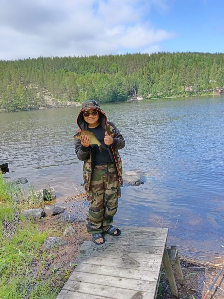 Nuorempi lapsi oli saanut keväällä koulusta palautetta: ei keskittymiskykyä, puhuu liikaa, haasteita kaverisuhteissa ja äänenvoimakkuudessa. Lahtelassa lapsi sai elämänsä ensimmäisen kalan. Hän odotti sitä laiturilla pitkään ja kärsivällisesti hiljaa. Voi ilmettä hänen iloisilla kasvoillaan, kun kala söi.