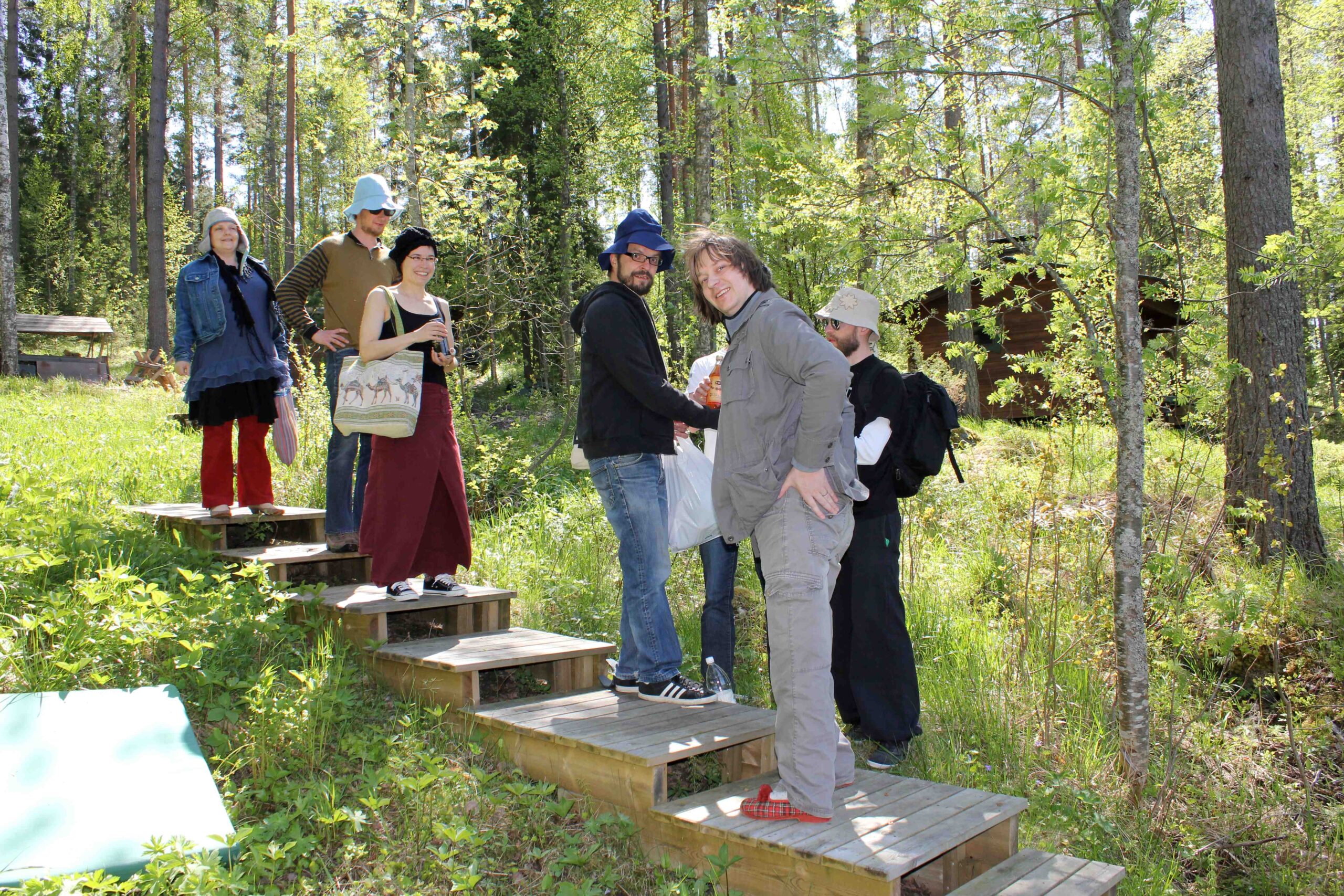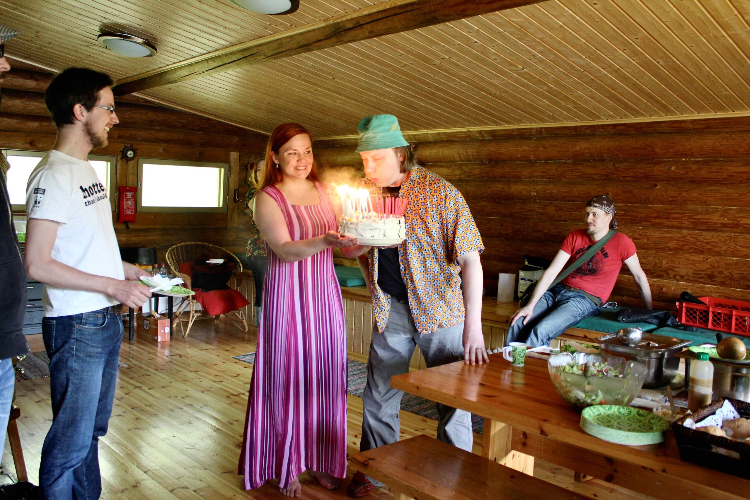 Lahtelaan oli salakuljetettu kakut kynttilöineen, ihan täysi catering. Illan mittaan oli ohjelmassa improvisoitua teatteria, lauluesityksiä ja alastomana puuhun kiipeämistä. En tiedä, onko Lahtelassa sitä ennen tai sen jälkeen esiintynyt rockyhtye – mutta silloin esiintyi, sillä hämäläiset vanhat soittokaverini roudasivat paikalle rummut, kitarat ja vahvistimet.